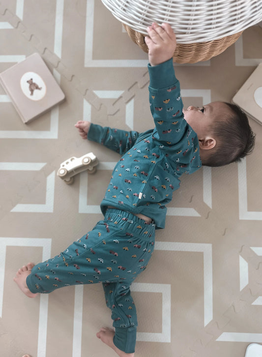 Bamboo Long Sleeve Pocket Romper- Penguins on Night Sky