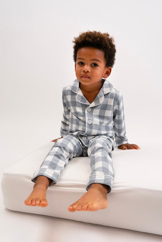 Bamboo Long Sleeve Classic PJ Set- Denim Plaid
