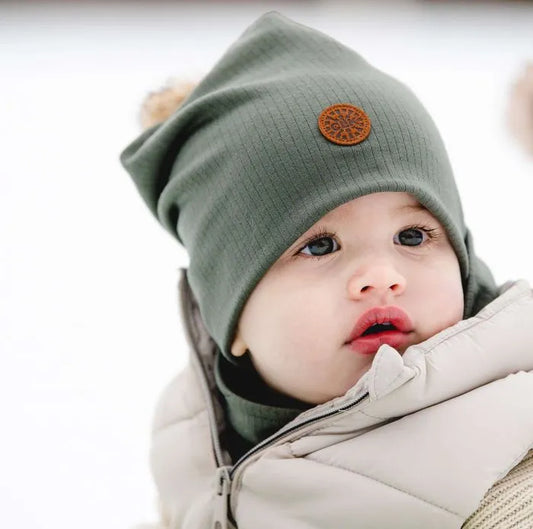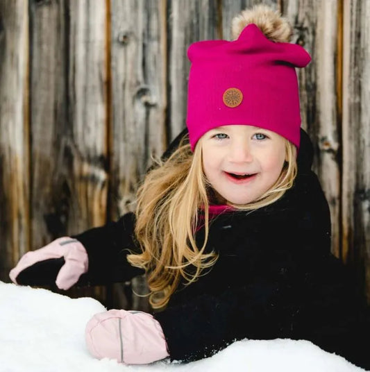 Fleece-Lined Windproof Knit Pom Beanie- Black Ink