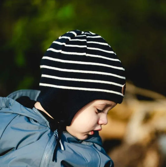 Striped Knit Jersey Lined Hat- Navy