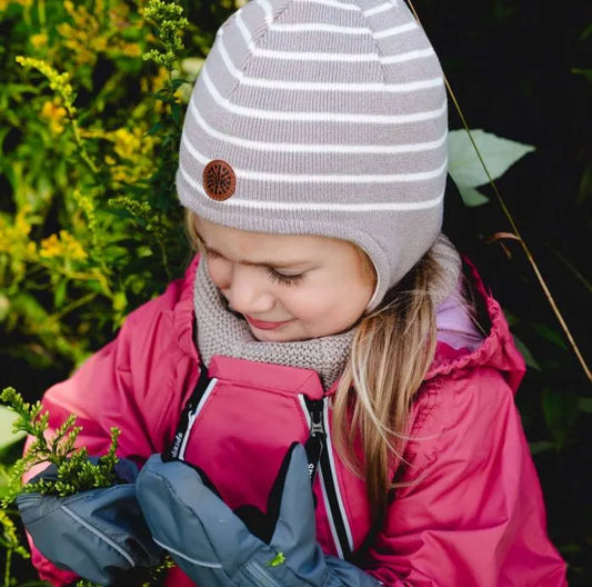 Striped Knit Jersey Lined Hat- Tan