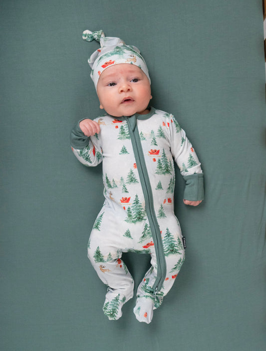 Bamboo Footed Zipper Sleeper- Sleigh Ride