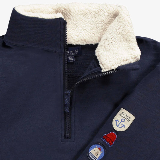 Navy Sherpa Quarter Zip Sweater