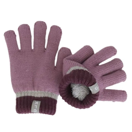 Plush-Lined Colourblock Stripe Knit Gloves- Orchid