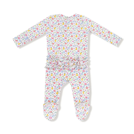 Ruffle Back Zip Footie- Fall Fruit Floral