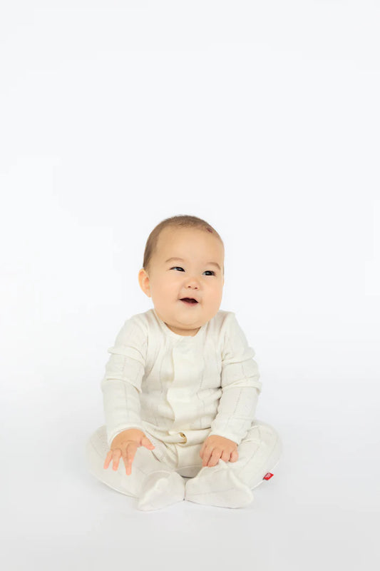 Organic Magnetic Pointelle Footie- Tofu White