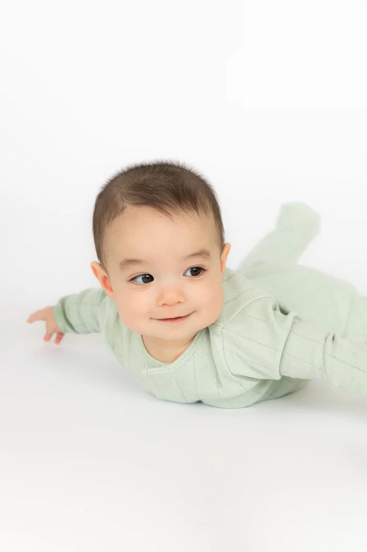 Organic Magnetic Pointelle Footie- Seagrass