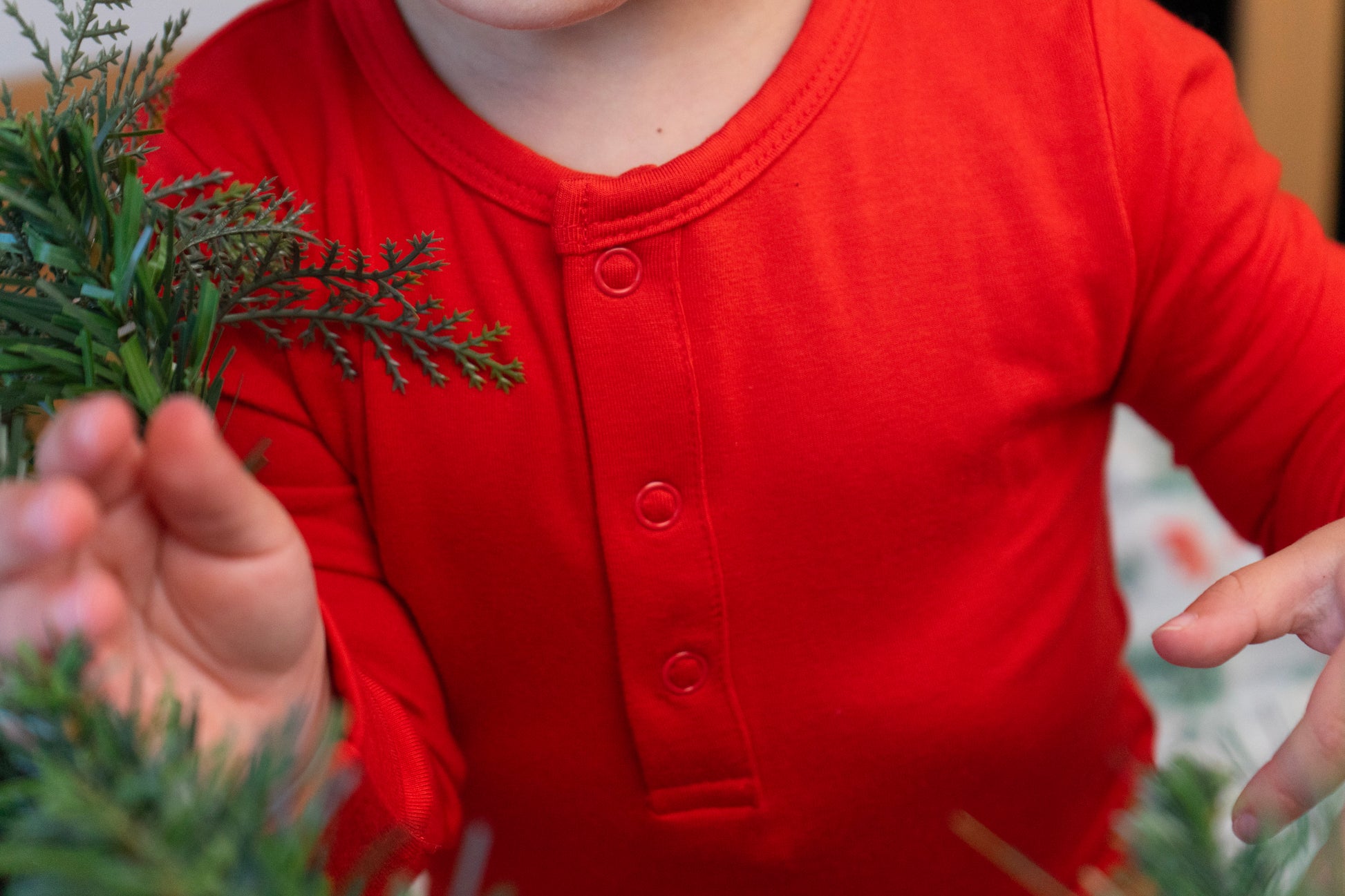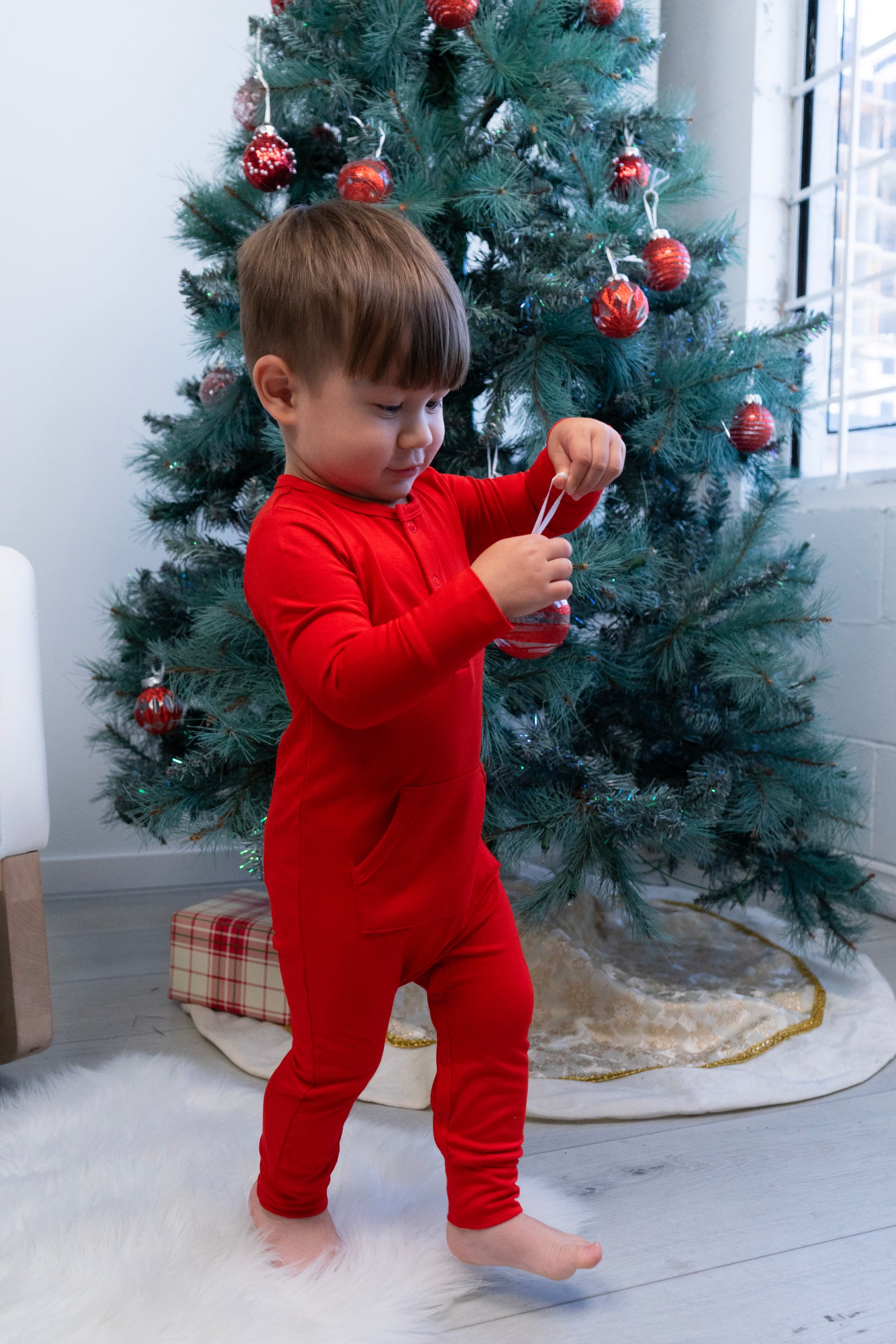 Bamboo Long Sleeve Pocket Romper- Santa Red