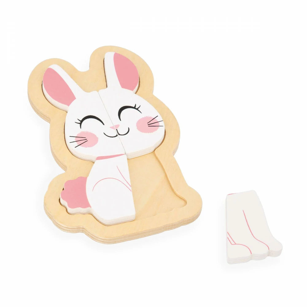This set of 4 early-learning progressive puzzles will delight little ones who love nature and the creatures living in their garden! With this wooden puzzle set - presented in a pretty gift box - which contains 4 puzzles, ranging from 2 to 5 pieces, children can have fun whilst progressing at their own pace. Featuring little ones’ favourite animals: a 2-piece snail, a 3-piece tortoise, a 4-piece rabbit and a 5-piece butterfly. The pieces - which must be put back in the right order on the wooden stand - have been designed for babies to grasp onto them well. This early-learning game will be a true pleasure to play! This toy can also be used to prompt children to learn their first numbers. The puzzles are made from FSC® wood.
